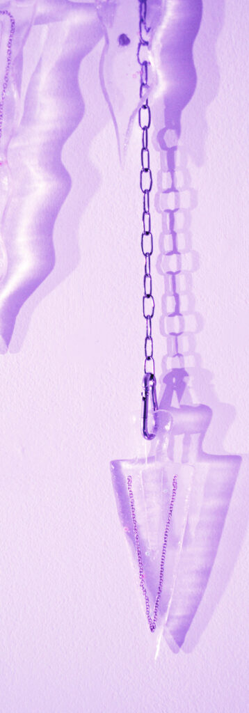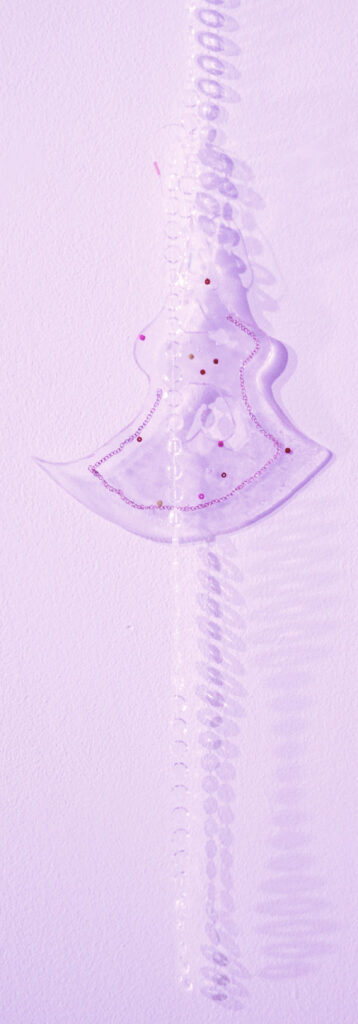 Dans cette profession, réservée aux femmes parvenues à se reconnecter à leur écosystème pour y puiser les derniers courants mystiques qui circulent encore sous les décombres ; les guérisseuses fabriquent des néo-rituels liquides purificateurs. Leurs flacons de sources miraculeuses sont particulièrement prisés. Aujourd’hui considérés comme des produits de luxe réservés à la jet set, ils sont vendus à moindre coût à des consomateur•ice•s de la classe moyenne sous la forme d’objets imprégnés de leurs pouvoirs magiques. Les Coral Blades fabriquées et sanctifiées par Medusa aident ainsi leur propriétaire à survivre dans un quotidien social en flamme, perturbé les crises écologiques de nos biomes en cendres.
