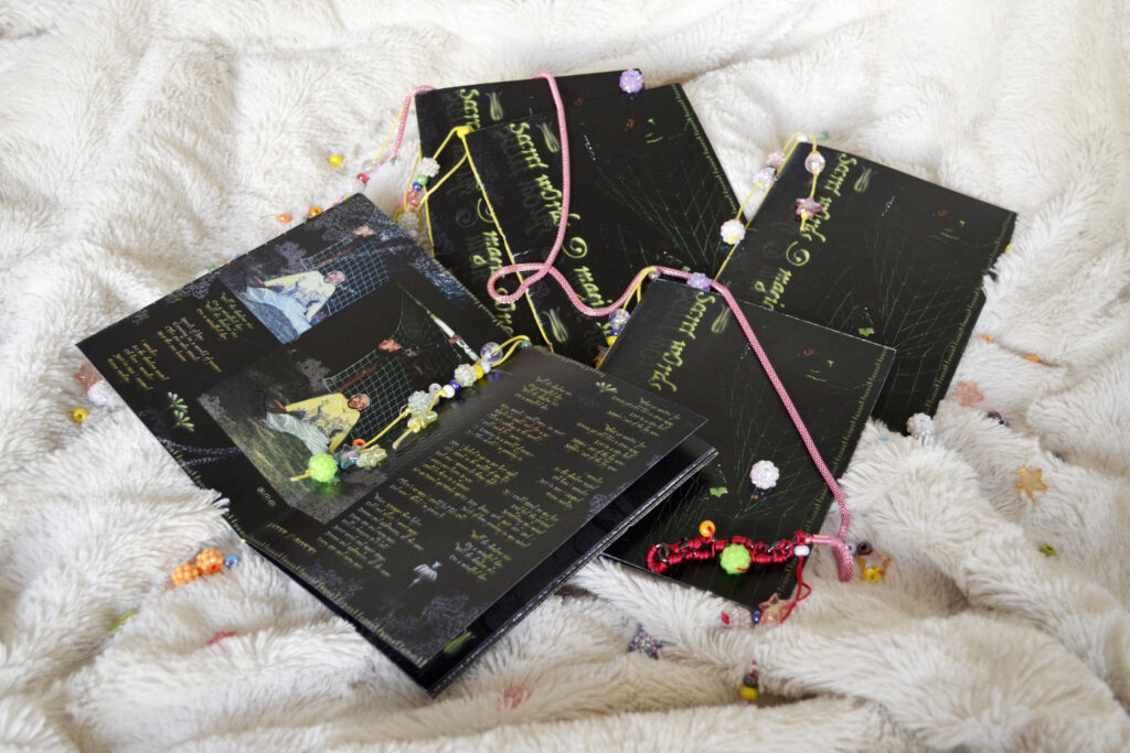 Le fanzine Secret w0rds & magic st0nes tisse les prémisses d’un récit d’aventures dans les mondes miroirs. Emprunt d’un univers cyber-archaïque, une fiction décousue se fraye un chemin dans les confins d’un monde oublié, fait de cristaux et d’âmes chimères dont les regards fuient entre les pages.